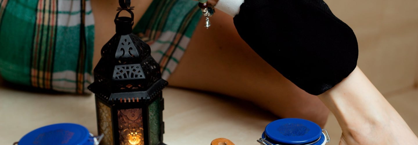 Utilisez le gant sous la douche ou au hammam pour un rituel facile et efficace.